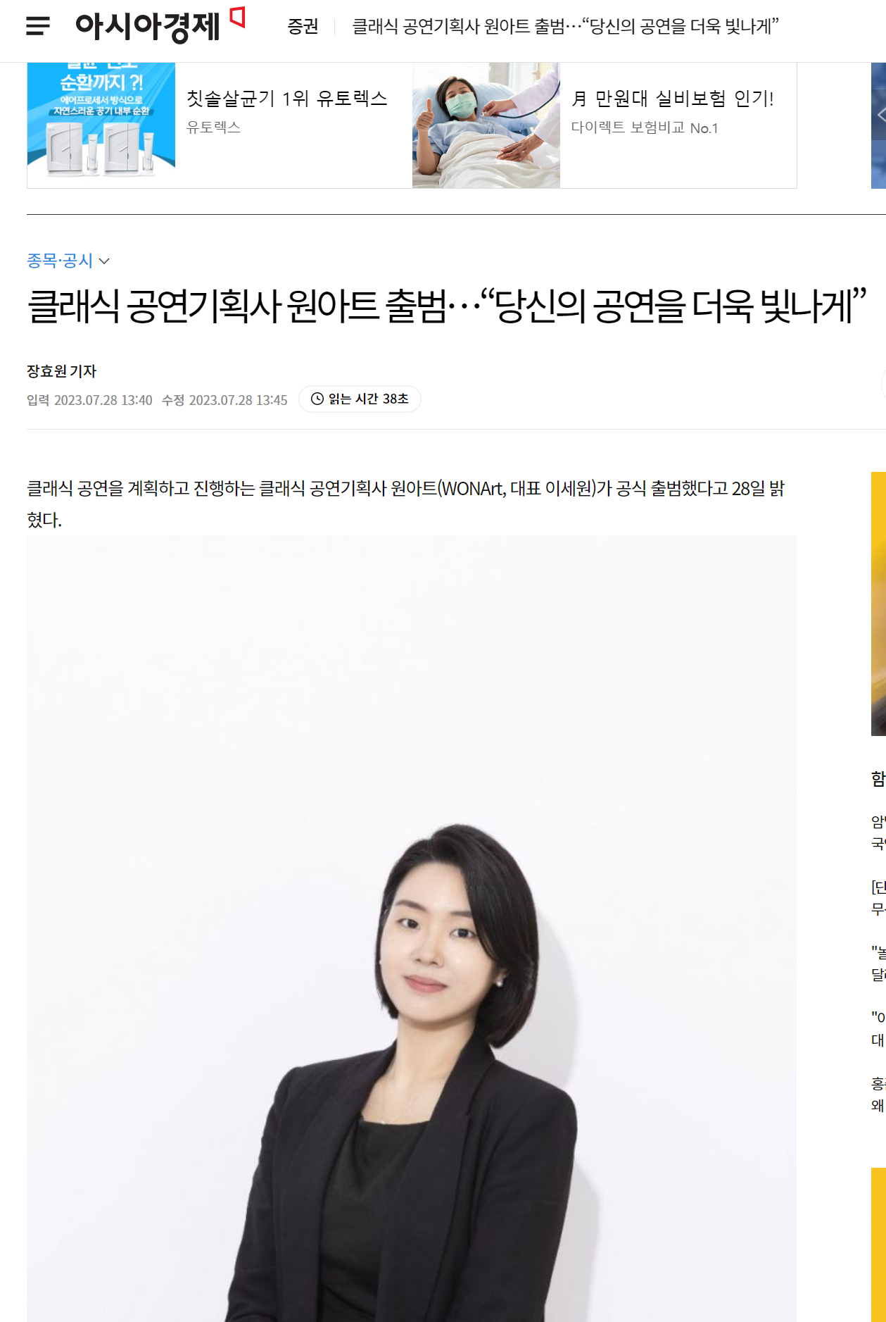 클래식 공연을 계획하고 진행하는 클래식 공연기획사 원아트(WONArt, 대표 이세원)가 공식 출범했다고 28일 밝혔다.