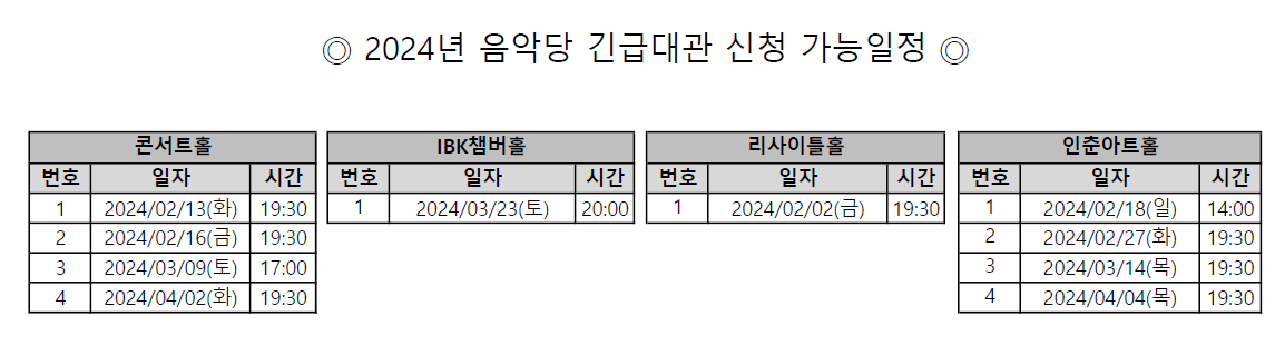 ▶ 음악당 2024년 긴급대관 공고 ◀