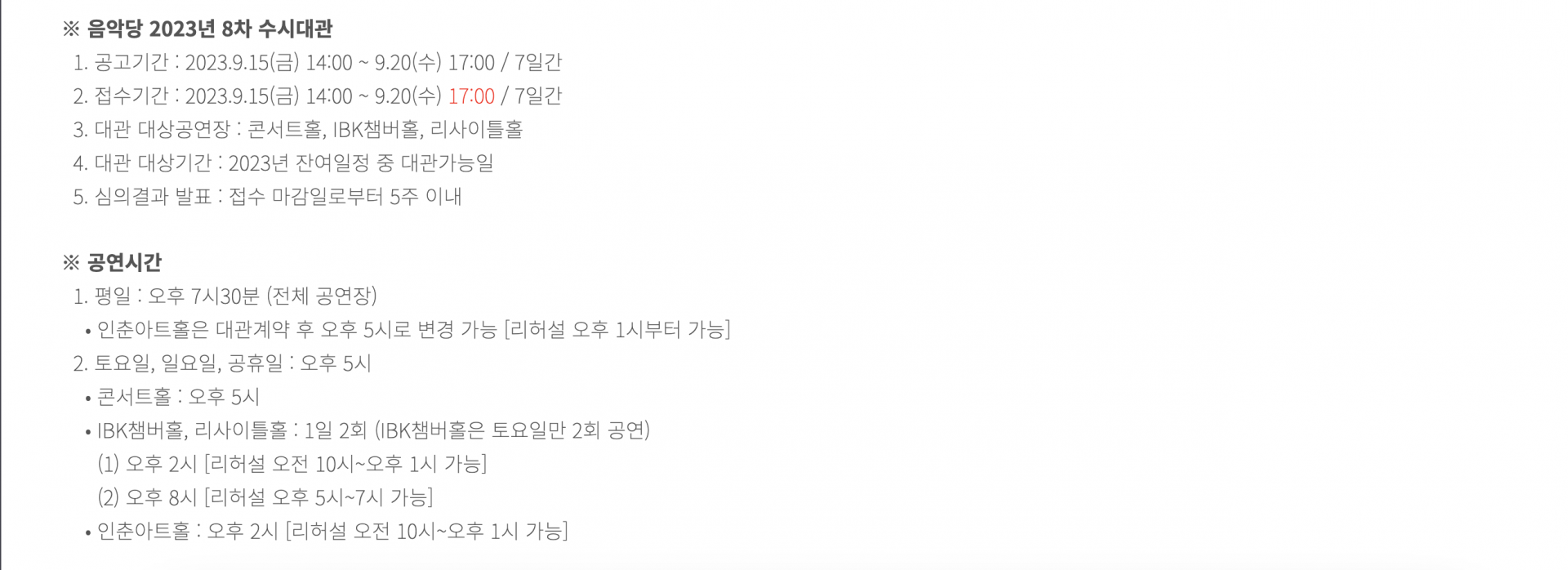 ▶ 음악당 2023년 8차 수시대관 공고 ◀